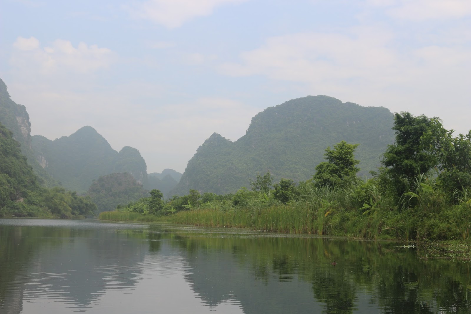 Manchmal waren diese so niedrig und eng, dass wir ein Platzproblem hatten. Ein Boot wird in der Regel mit 6 Vietnamesen oder 4 Europäer beladen bevor sie starten. Zu uns gesellte sich ein französisches Pärchen mit den wir bei der Fahrt die Plätze tauschten. Somit hatten alle die Gelegenheit, die beeindruckende Natur zu genießen.