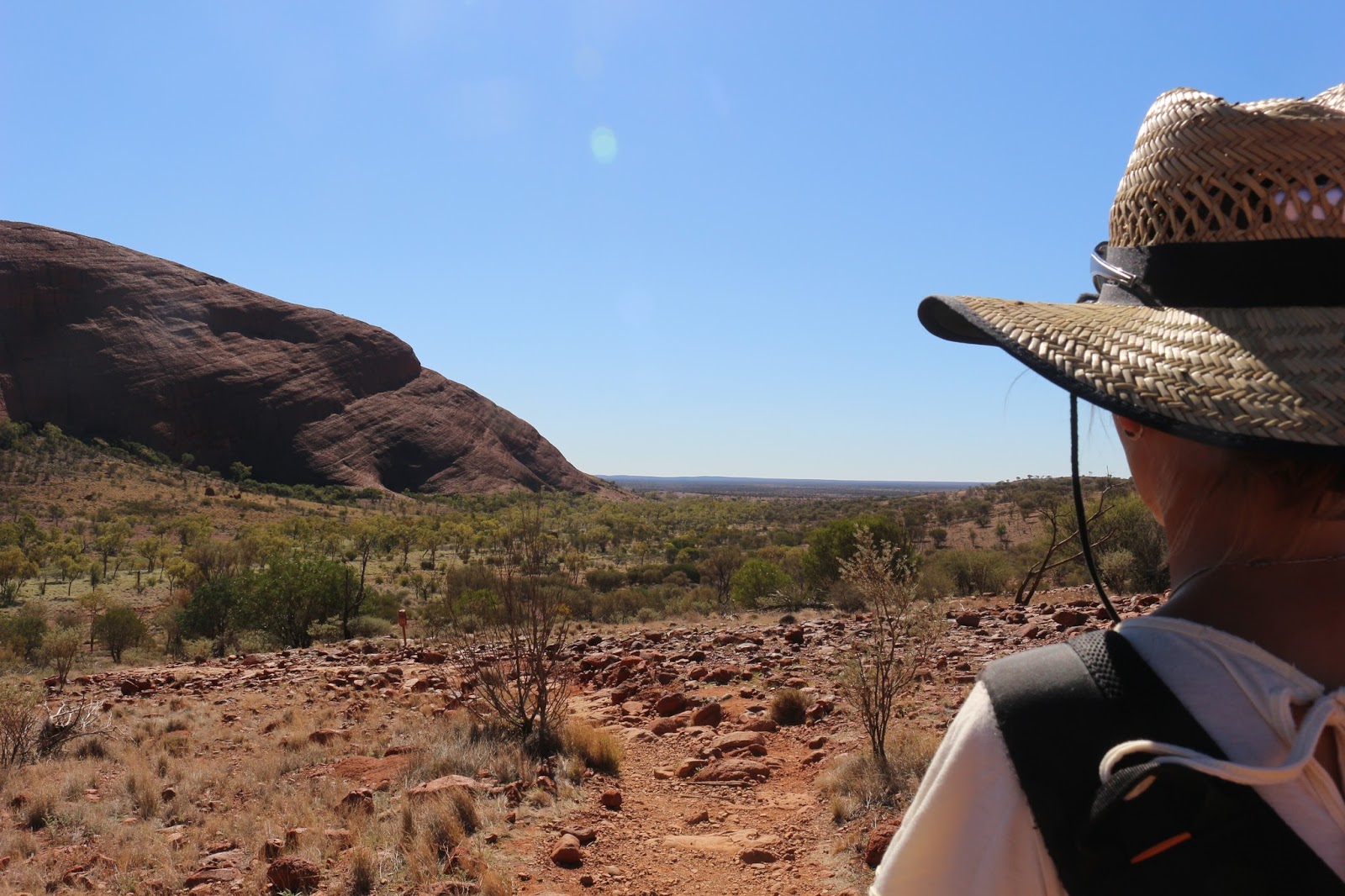 Kata Tjuta ( Olgas) bedeutet "viele Köpfe" und ist von großer Bedeutung für die Tjukurpa der Aborigines, besonders für die Männer. Der 7,4 km lange Rundweg windete sich durch die Schluchten und ermöglichte uns wundervolle Ausblicke auf die surrealen Felsendome und führte über unterschiedliche Terrains.